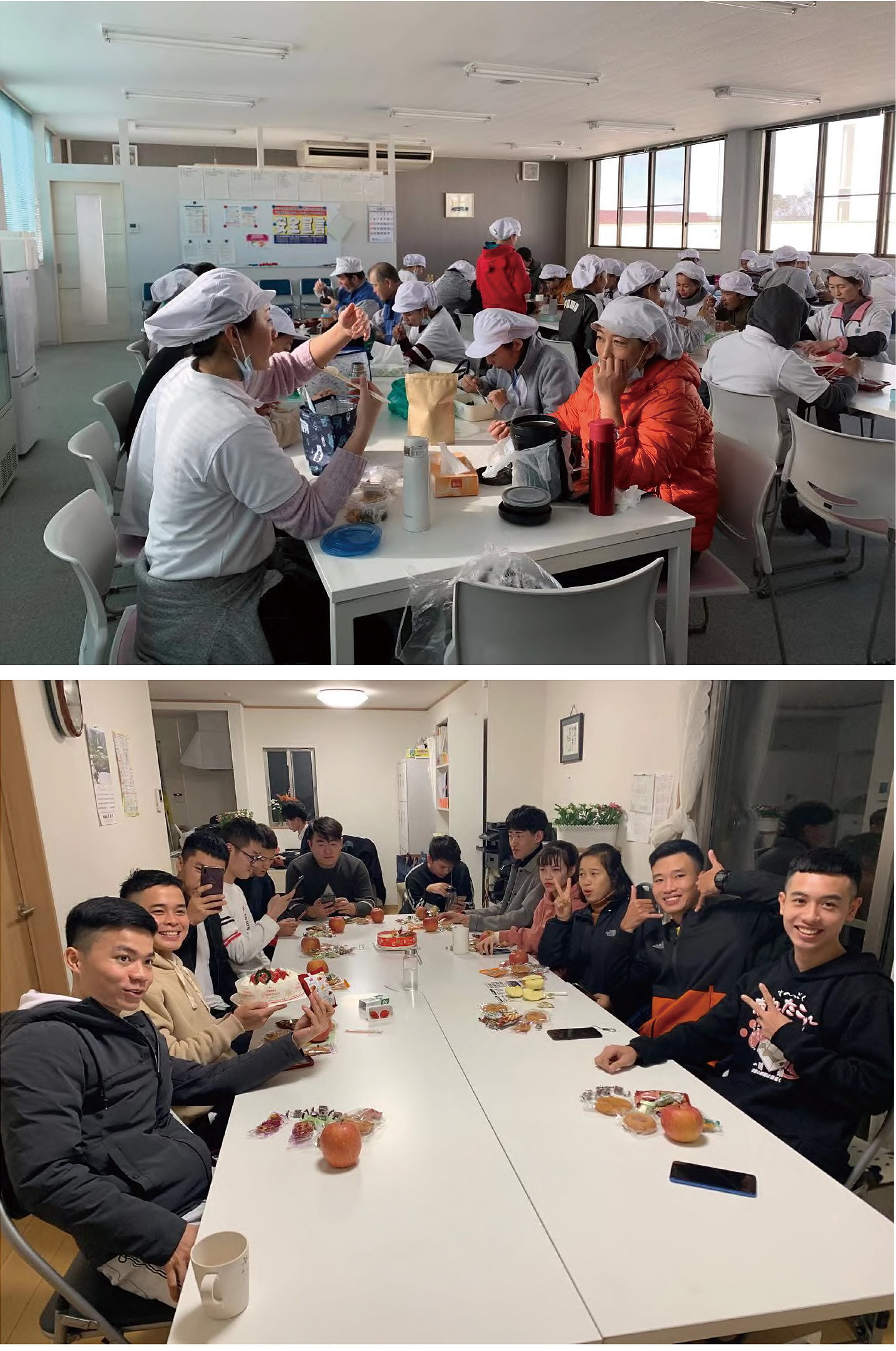 日本語スキルは個人差がありますが、入国前に現地で日本語や日本の習慣などを学習します。入国後にも仕事を通してどんどん言葉を吸収していきます。比較的、日本人の方に比べて言語習得能力は非常に高いように感じます。配属後は実習生たちの様子を確認する義務がありますので、しっかり監理団体と連携しサポートを継続的に行っていきます。